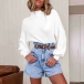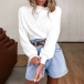Give your wardrobe a season update with this long sleeve top when the weather gets drop. Boasts a stylish white tone,finished with long sleeve and mock neck design,this piece bears a simple design style,but it can keep you warm as well as offer you different matching styles.