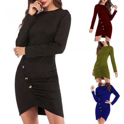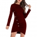 Boasts a solid color,the oblique buttons design make this piece look so chic and unique,