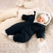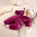 Fashion Solid Color Long Sleeve Plush Lining Hooded Jumpsuit for Babies