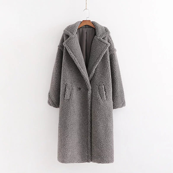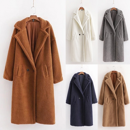 Fashion Solid Color Long Sleeve Plush Overcoat