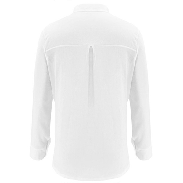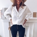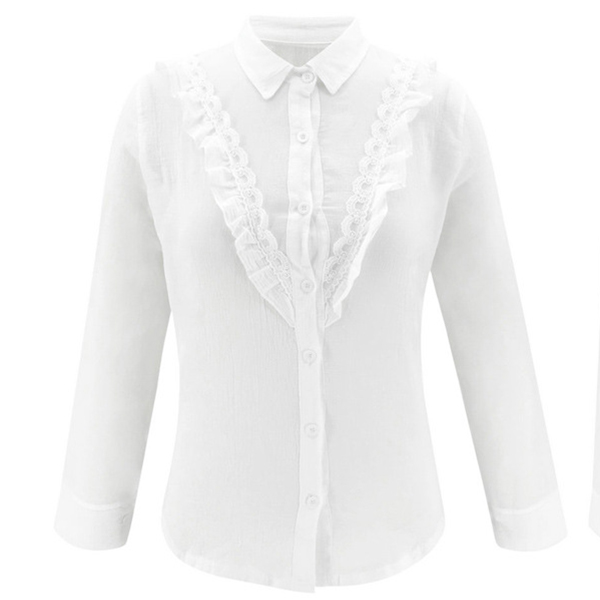 For your workdays,this cozy yet stylish shirt is worth to be your partner. Comes with a classic yet stylish white tone,the long sleeve,POLO collar and single-breasted design maintain the traditional design style,while the ruffle design will lend you a dash of sweet and feminine vibes. All-match design allows to be matched with different style bottoms.