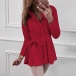 Fashion Solid Color Long Sleeve POLO Collar Shirt with Waist Strap