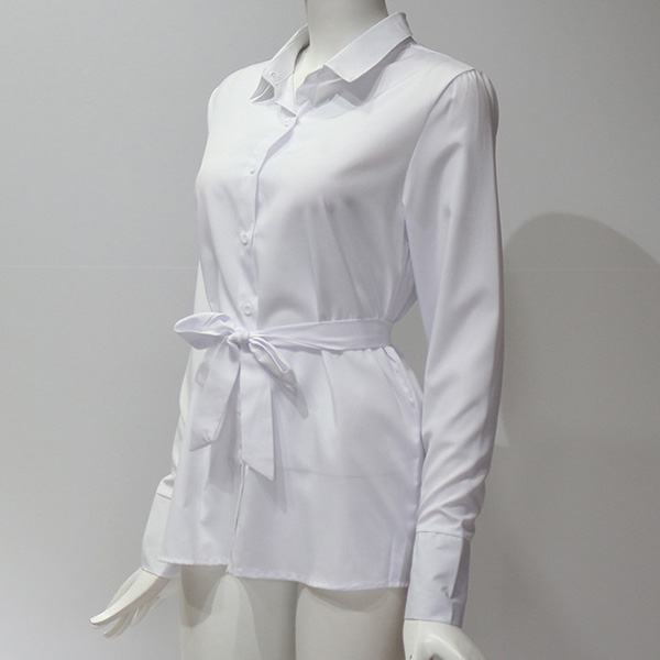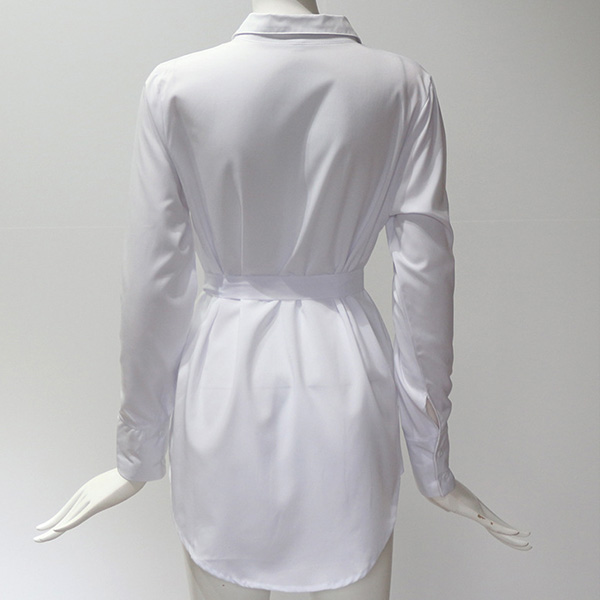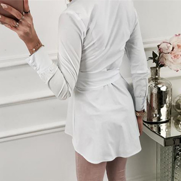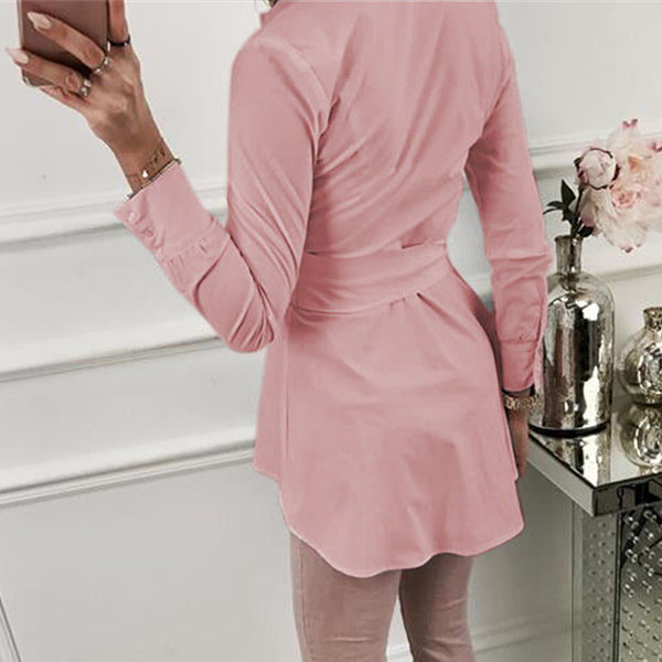 For a stylish and charming workday look,you can turn to your eyes on this shirt. Crafted in a solid color,with long sleeve and POLO collar design,classic yet stylish. Comes with a waist strap design,which not only boosts its entire charm,but also helps highlight your slender figure. So why not buy one?