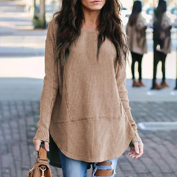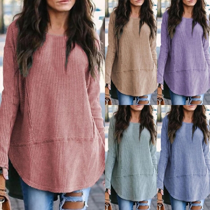 If you are ever in doubt as to what to wear on these casual weekends,you can always rely on this t-shirt. Solid color style,finished with long sleeve,round neck and arc hem,simple,cozy yet stylish. Slip into this wonderful piece and enjoy effortless style.