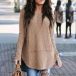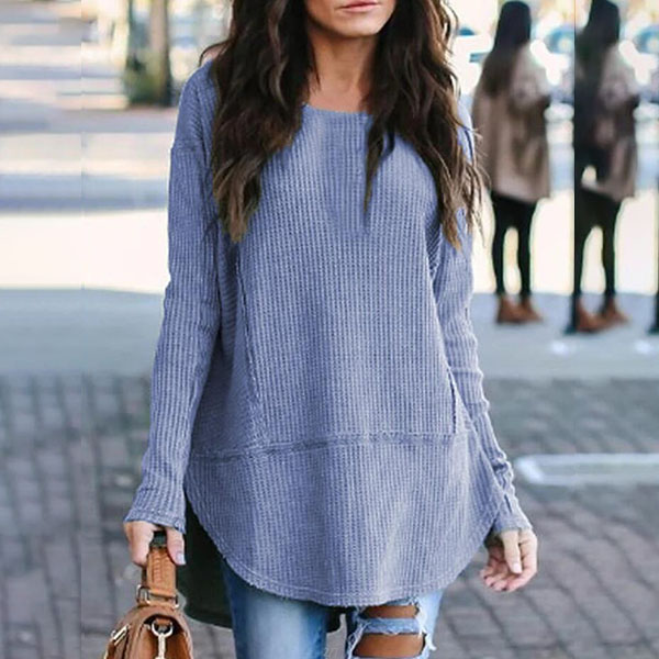 Fashion Solid Color Long Sleeve Round Neck Arc Hem T-shirt