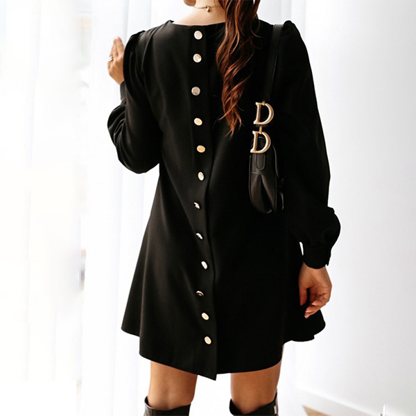 A cool way to incorporate comfort and style into your everyday look is by adding this dress to your ensemble. Comes with a solid color,finished with long sleeve,round neck and a loose silhouette,cozy yet stylish. Moreover,the back-button design makes this piece look more attractive. So why not slip into this piece to exude your personality?