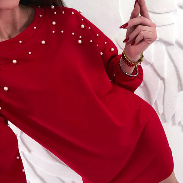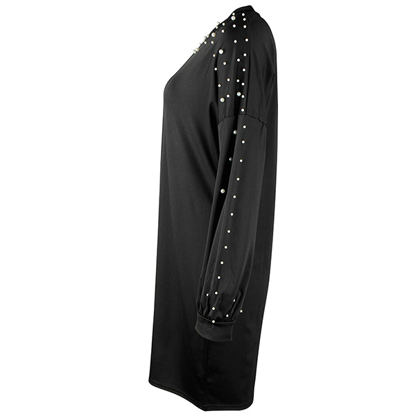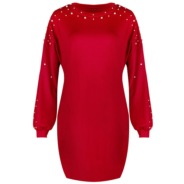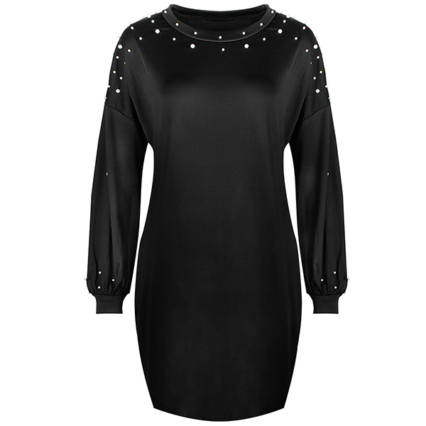 On your lazy days,this stylish dress can be a perfect solution. Comes with a solid color,finished with long sleeve,round neck and soft fabric,this piece knows how to give you a comfortable day. What's more,the beaded details will make this piece more attractive. Simply need to match with your favourite shoes,then you can be ready to go out!