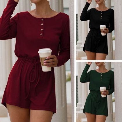 Finished with solid color,long sleeve,round neck and a drawstring waist,this piece knows how to