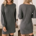 Fashion Solid Color Long Sleeve Round Neck Dress