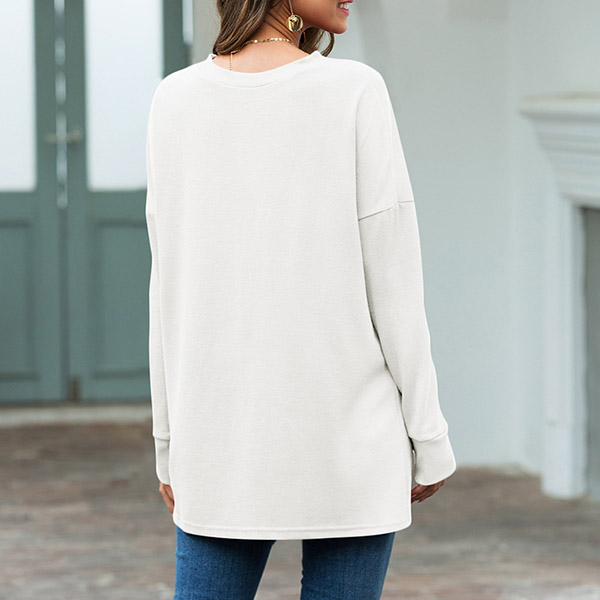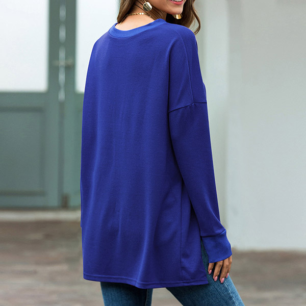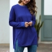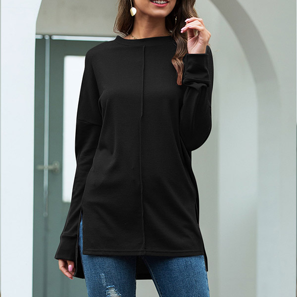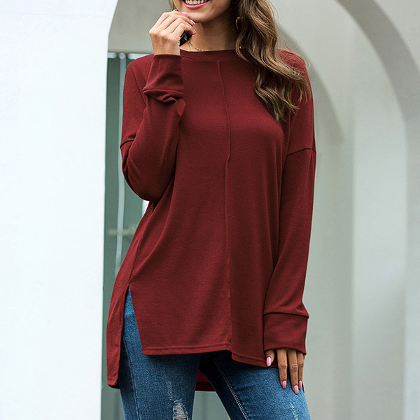Fashion Solid Color Long Sleeve Round Neck High-low Hem T-shirt
