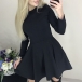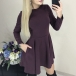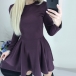 Fashion Solid Color Long Sleeve Round Neck High Waist Dress