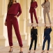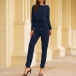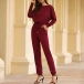 Fashion Solid Color Long Sleeve Round Neck High Waist Jumpsuit