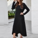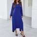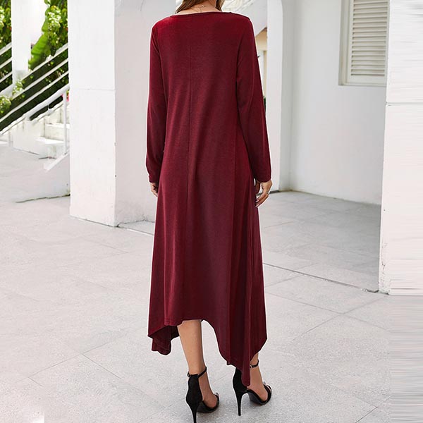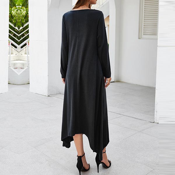 Fashion Solid Color Long Sleeve Round Neck Irregular Hem Dress