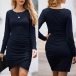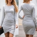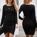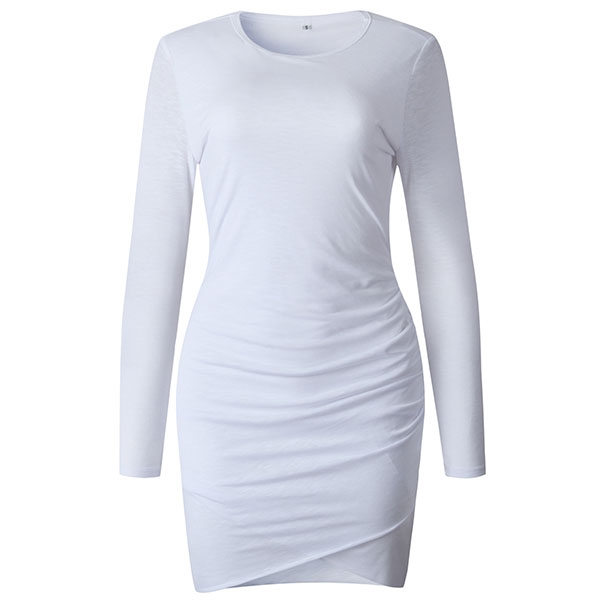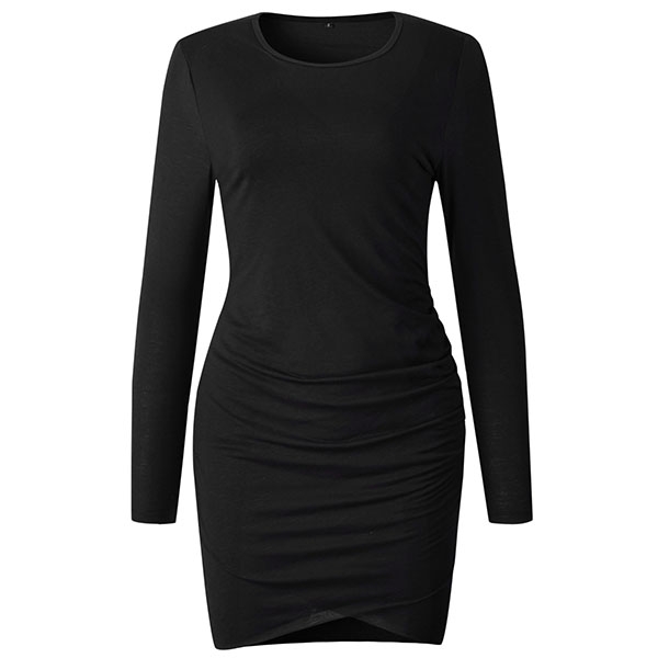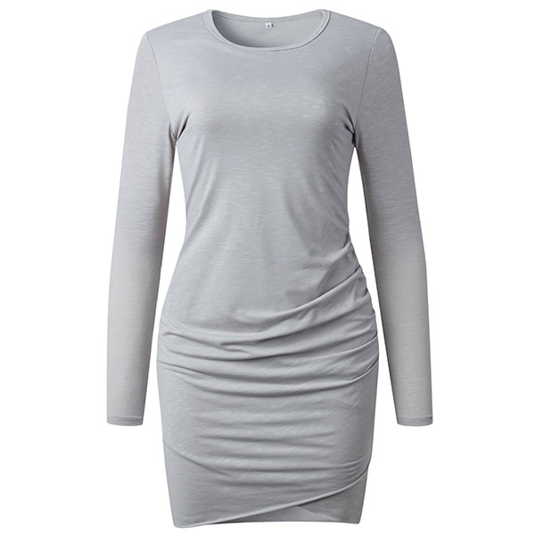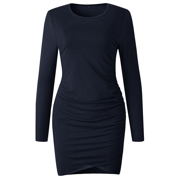 Avslutad med lång ärm, rund hals, en oregelbunden fåll och en passform siluett, denna underbara klänning