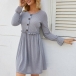 Fashion Solid Color Long Sleeve Round Neck Knit Dress