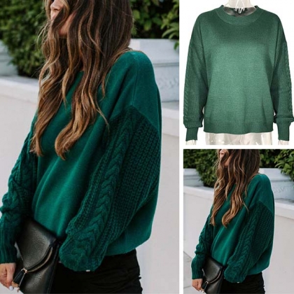 Fashion Solid Color Long Sleeve Round Neck Knit Top