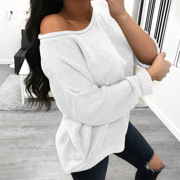 Fashion Solid Color Long Sleeve Round Neck Loose Knit Top