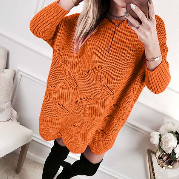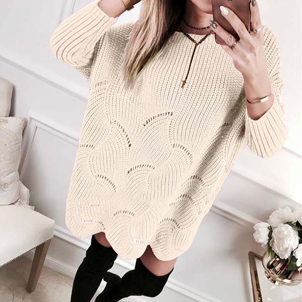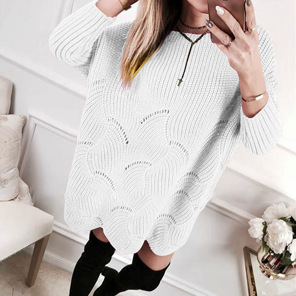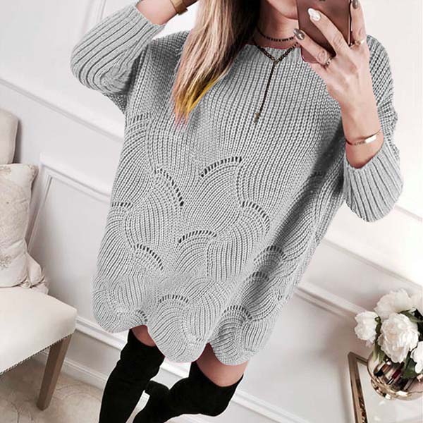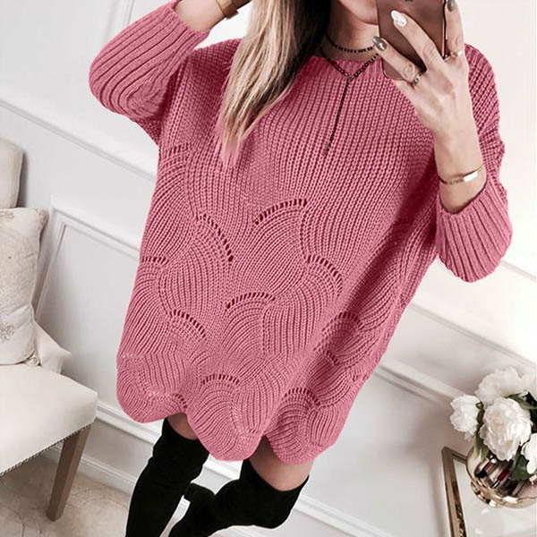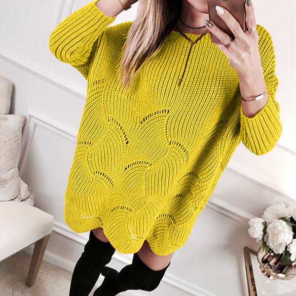 Fashion Solid Color Long Sleeve Round Neck Loose Sweater Dress