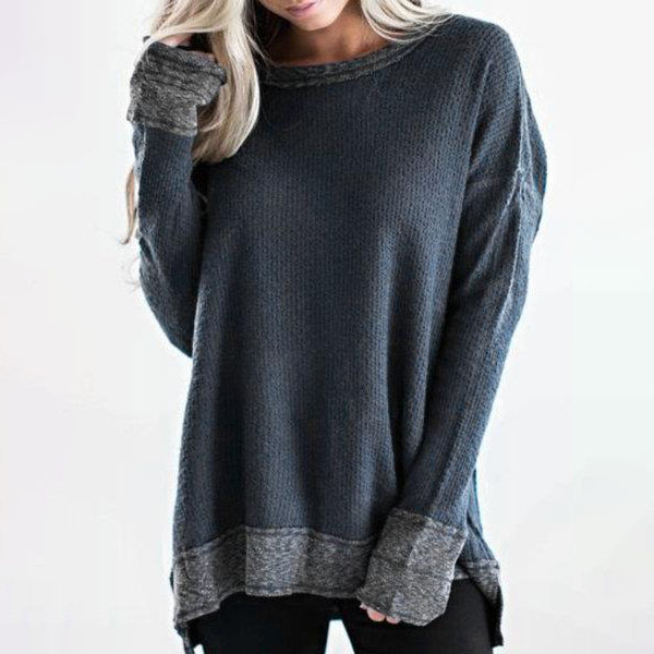 Fashion Solid Color Long Sleeve Round Neck Loose T-shirt