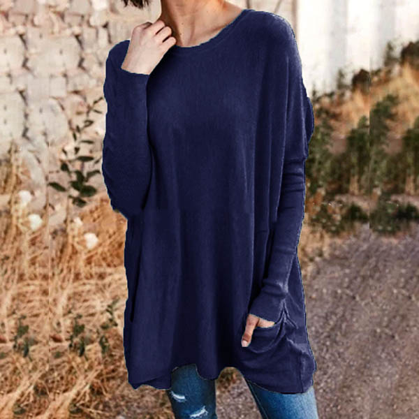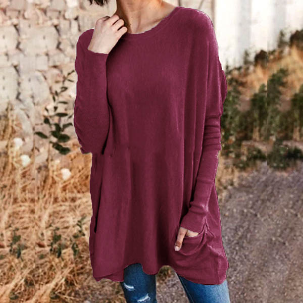 On these casual days,this t-shirt would be your wise choice. Solid color style,crafted from soft and breathable fabric,with long sleeve,round neck and a loose silhouette,this t-shirt can ensure you a comfortable day. The front pockets design will enhance its charm. Add one to your casual wardrobe ensemble.