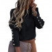 Fashion Solid Color Long Sleeve Round Neck Metal Button Top