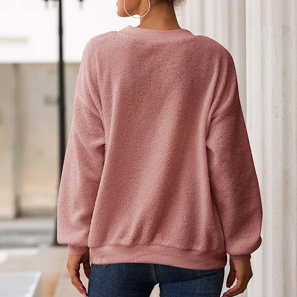 When you feel a little cold,you can just slip into this plush sweatshirt to stay warm. Solid color style,finished with long sleeve and round neck design,this piece bears a simple design style,but it can offer you different matching styles while maintaining your charm.