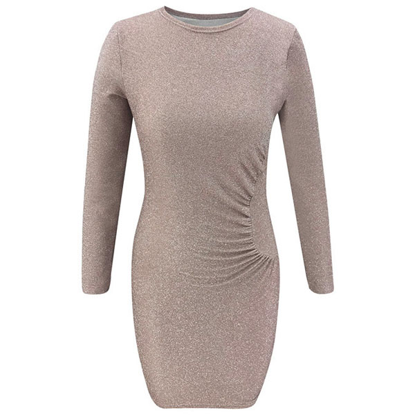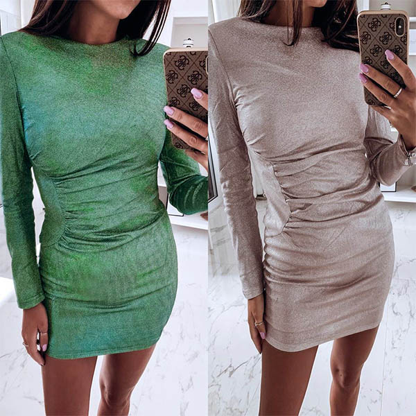 Fashion Solid Color Long Sleeve Round Neck Slim Fit Dress
