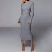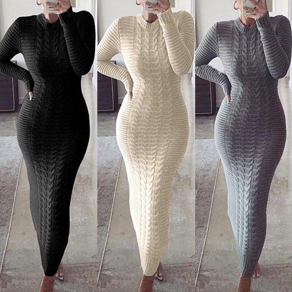 För dessa kalla dagar kan den här stickade klänningen enkelt vara din garderobsvara. Den kommer med en enfärgad, färdig med lång ärm, rund hals och en passform siluett, den här delen kan inte bara hålla dig varm, utan kan också visa upp din smala figur. När du matchar med en överrock i dessa kyliga vinterdagar kan du få en snygg vinterlook!