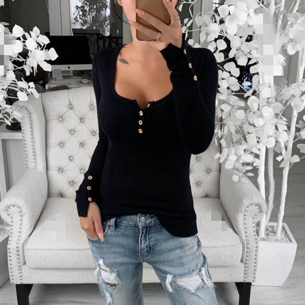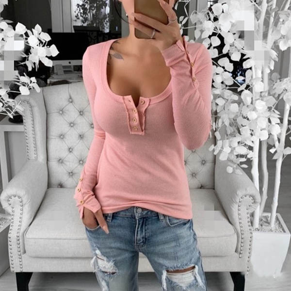 Fashion Solid Color Long Sleeve Round Neck Slim Fit T-shirt