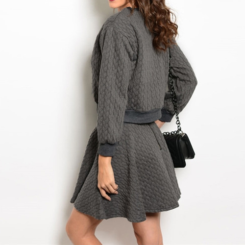 Solid color style,including a long sleeve round neck top and a high waist skirt,this two-piece set