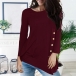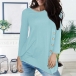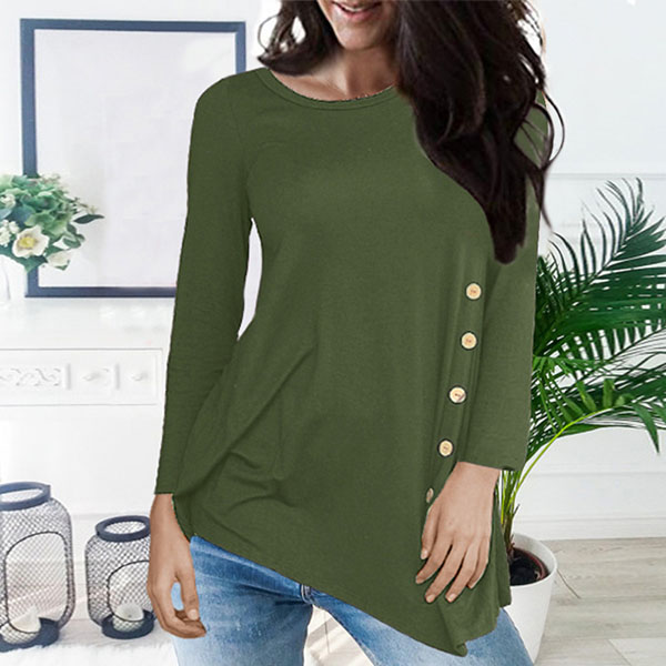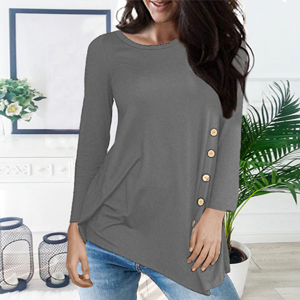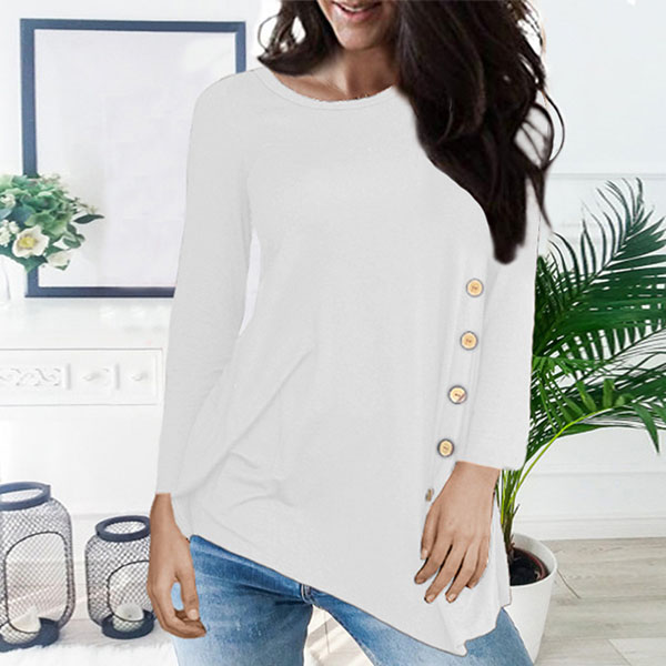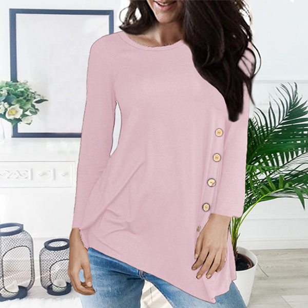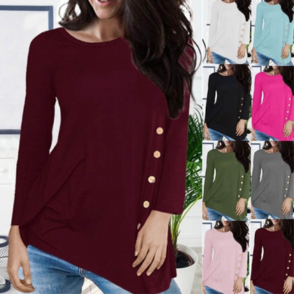 Fashion Solid Color Long Sleeve Round Nekc Side-button T-shirt