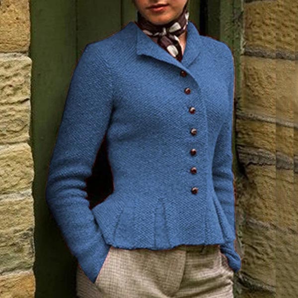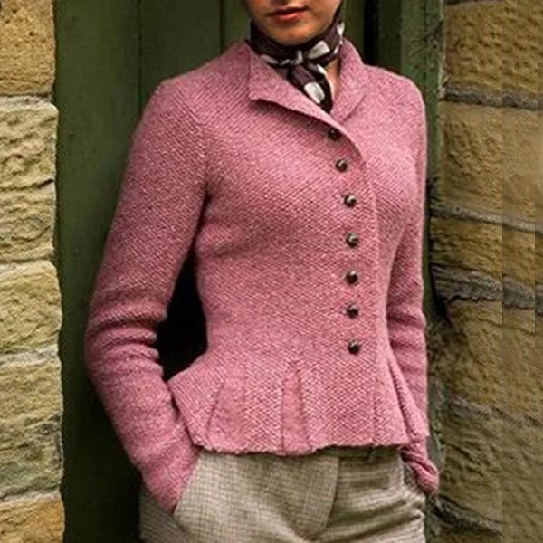 Fashion Solid Color Long Sleeve Ruffle Hem Front-button Knit Coat