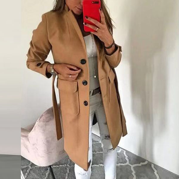 Modeullkappa med enfärgad, långärmad och enkelknäppt design