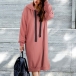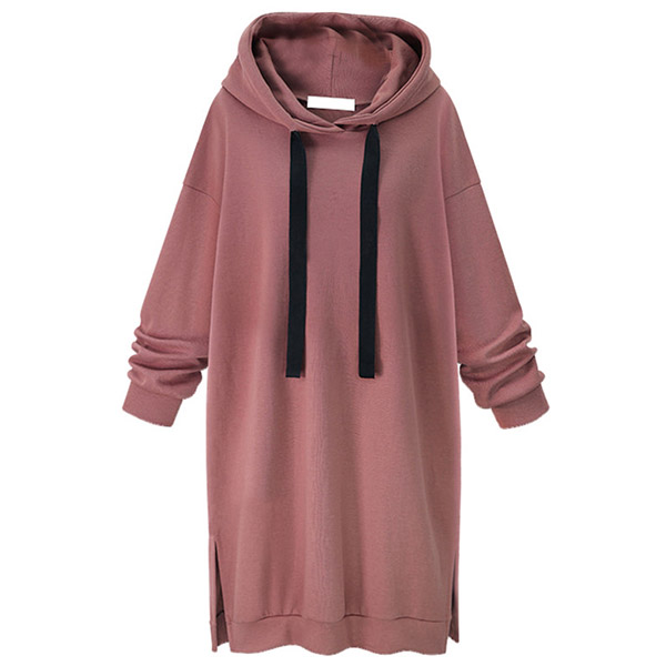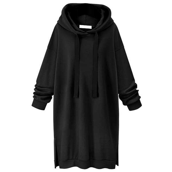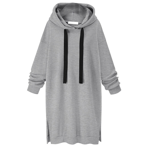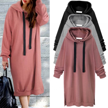 Fashion Solid Color Long Sleeve Slit Hem Hooded Sweatshirt Dress