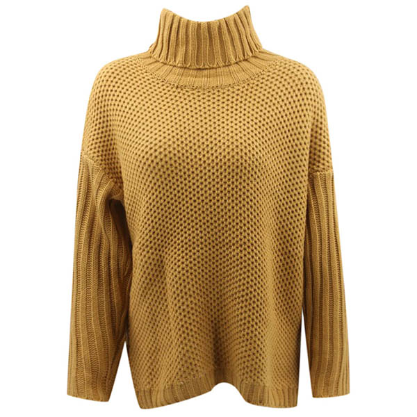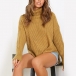 Fashion Solid Color Long Sleeve Slit Hem Turtleneck Sweater