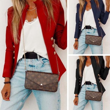 Fashion Solid Color Long Sleeve Stand Collar Front-button Jacket