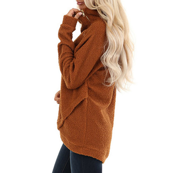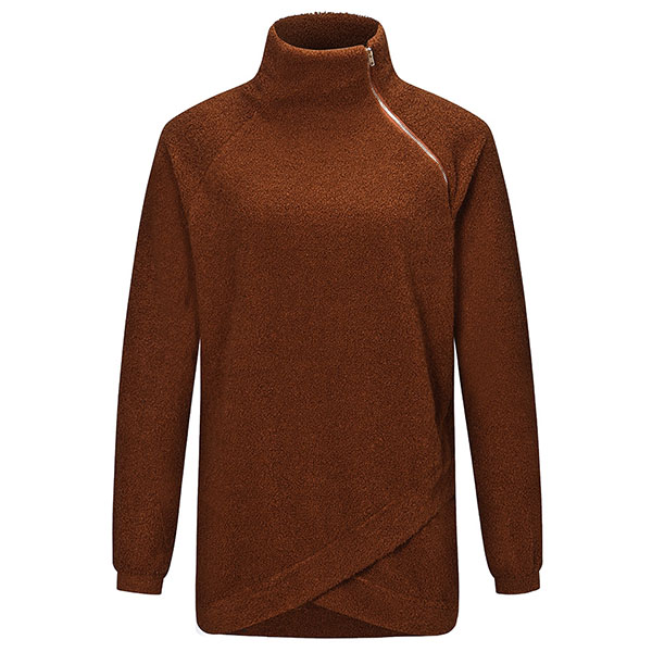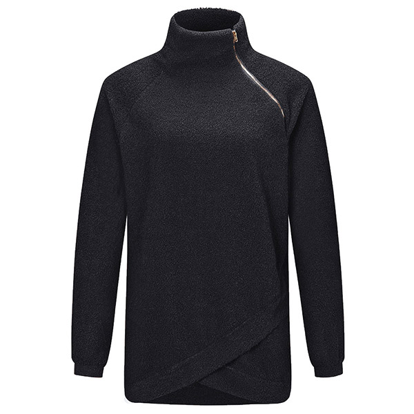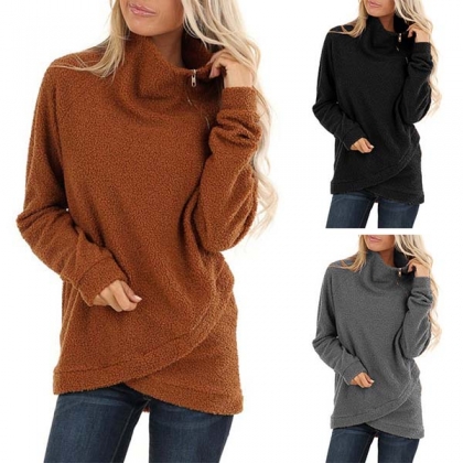 Fashion Solid Color Long Sleeve Stand Collar Irregular Hem Plush Sweatshirt