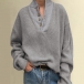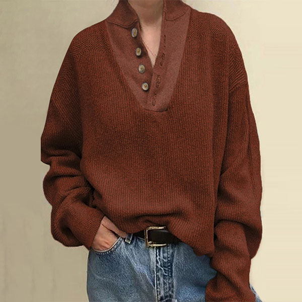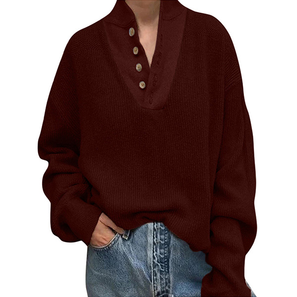When the days get a little cold,you can slip into this knit top to stay warm. Solid color tone design makes it look simple,stylish yet generous. Finished with long sleeve,stand collar and a loose silhouette,this wonderful piece knows how to exude your chic and stylish personality.