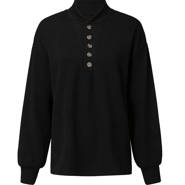 Fashion Solid Color Long Sleeve Stand Collar Knit Top