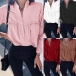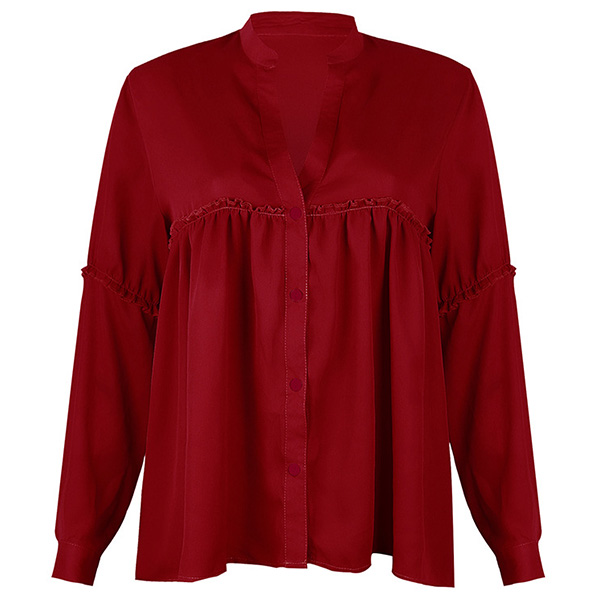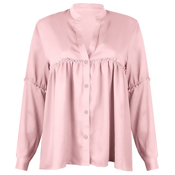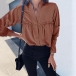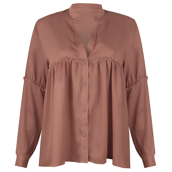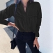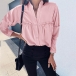 Fashion Solid Color Long Sleeve Stand Collar Loose Shirt