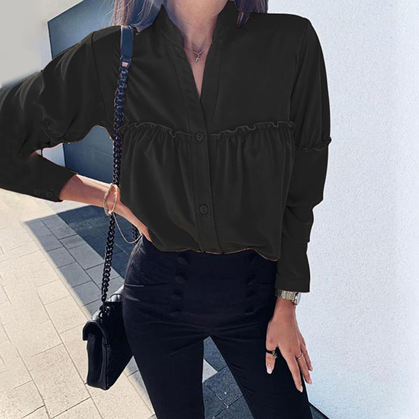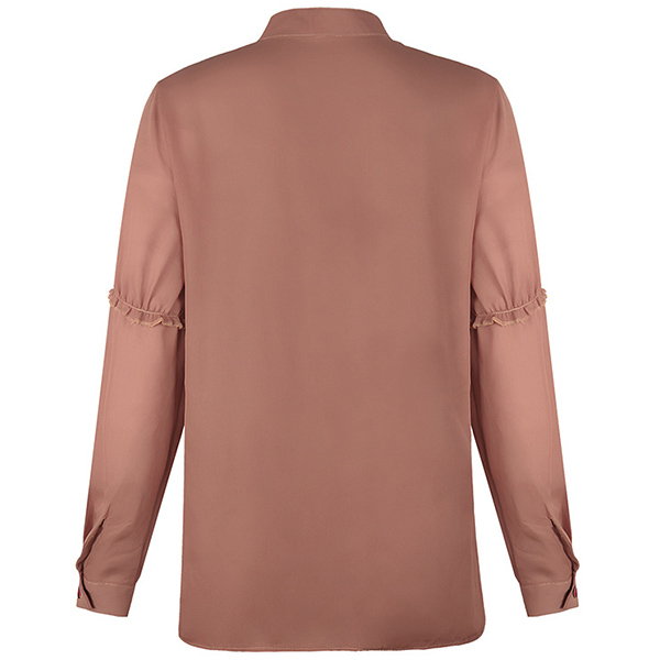 For a delicate and elegant workday look,you can count on this shirt. It boasts a solid color,finished with long sleeve and stand collar design,this piece bears a simple,classic yet stylish design style,but it can keep you feeling comfortable as well as offer you different matching styles.