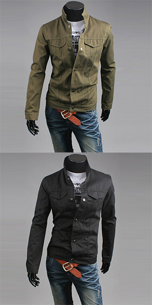 with long sleeve,front buttoned closure,chest pockets and stand collar design,looks cool and chic.