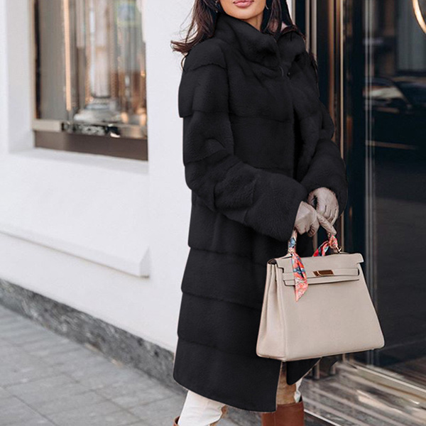 Hey,girls,you can just slip into this plush overcoat to resist against the cold days. It features a solid color,the stand collar and soft plush fabric design can ensure you a warm and comfortable day. We suggest you matching with a tight dress and over-the-knee boots for a charming and beautiful winter look!