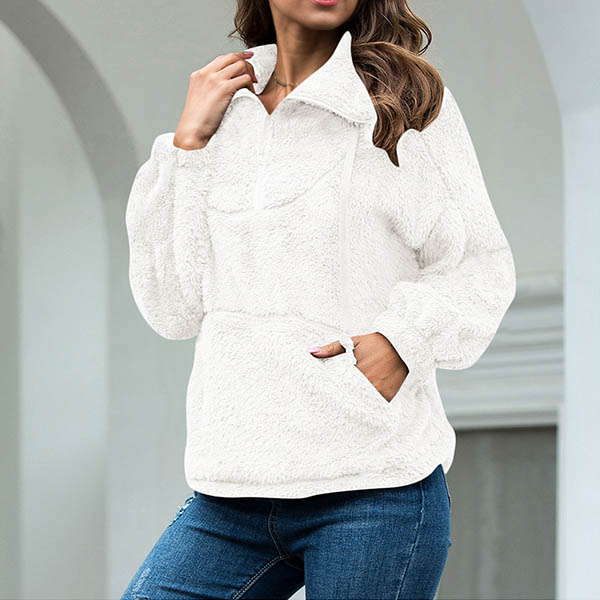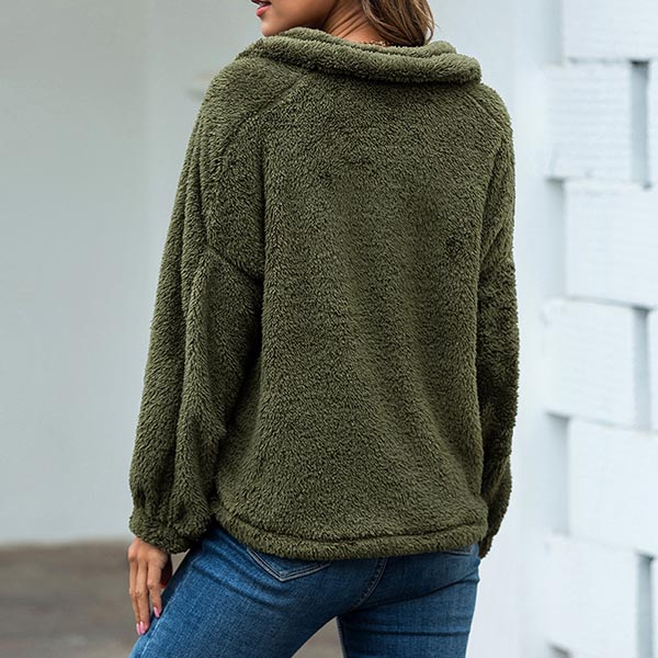 Fashion Solid Color Long Sleeve Stand Collar Plush Sweatshirt