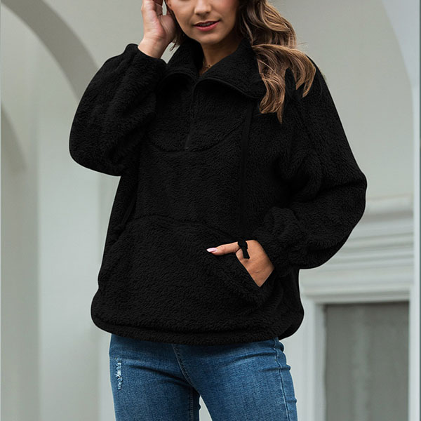 When the days get cold,this plush sweatshirt can easily strike your mind. Solid color tone design makes it look simple yet generous,while the stand collar and soft plush fabric can ensure you a warm and comfortable day. You can trust in this piece to keep warm while offering you a stylish and relaxed style.
