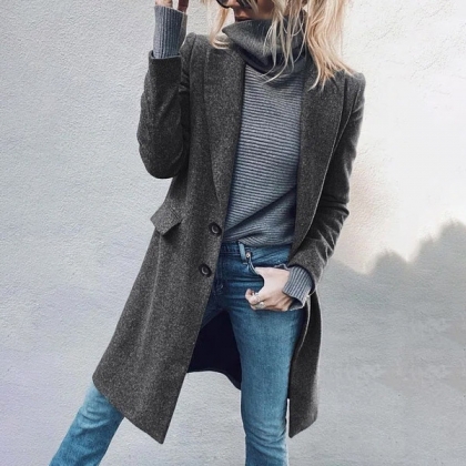 Det är dags att uppdatera din garderob med denna överrock när dagarna blir kalla. Enfärgad stil, stativkragen och enkelknäppt design kan få dig att se cool och moderiktig ut. Dessutom, tack vare all-match-designen, kan denna pjäs matchas med olika stilar som klänningar, t-shirts, tröjor och så vidare.