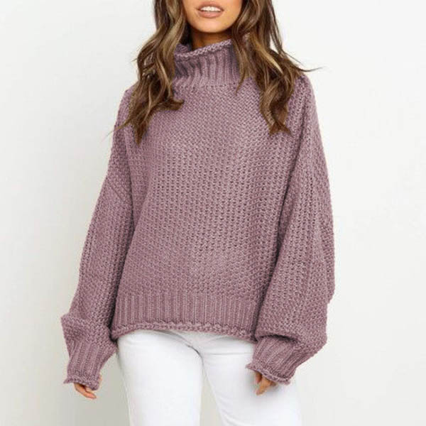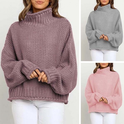 Fashion Solid Color Long Sleeve Turtkeneck Loose Sweater