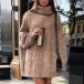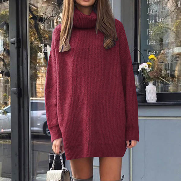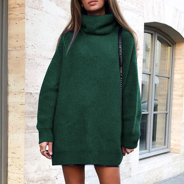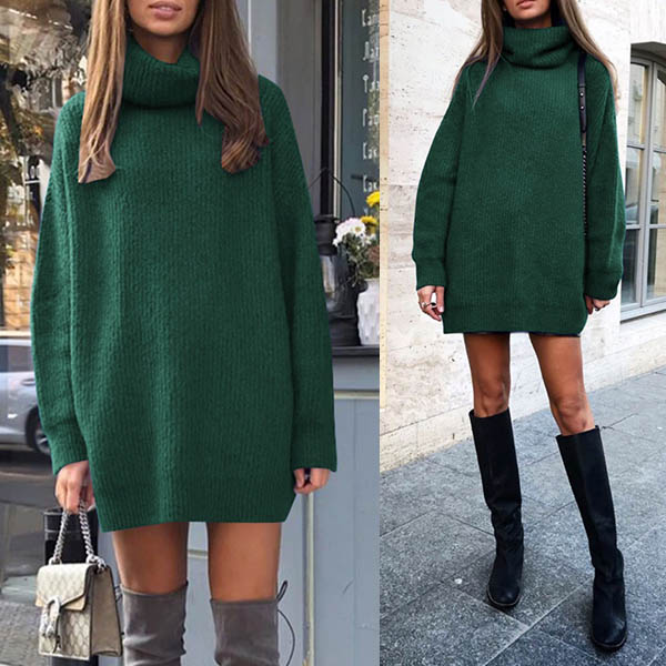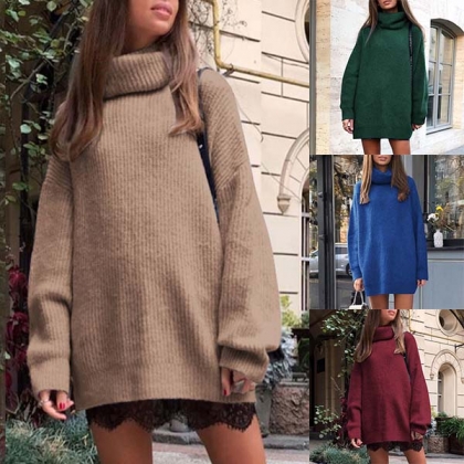 This sweater dress that exudes simplicity and stylish vibes is worth to be your timeless wardrobe staple when the days get cold. Solid color style,finished with long sleeve,turtleneck and a loose silhouette,this piece can offer you a charming autumn look by teaming with your over-the-knee boots and sparkle sweater necklace.