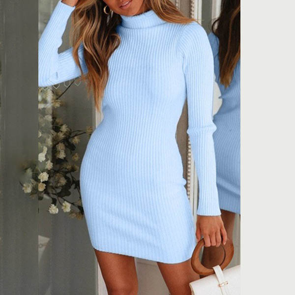 When the days get a little cold,this dress can be your new darling. It comes with a solid color,finished with long sleeve,turtleneck and a fit silhouette,this dress not only can keep you warm,but also can showcase your slender figure. You can wear it alone in the spring and autumn days or match with your overcoats in these cold days.