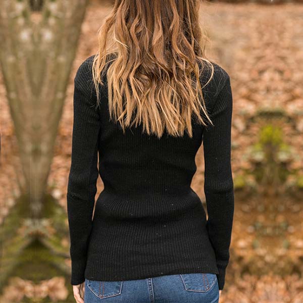 Fashion Solid Color Long Sleeve Turtleneck Slim Fit Knit Top
